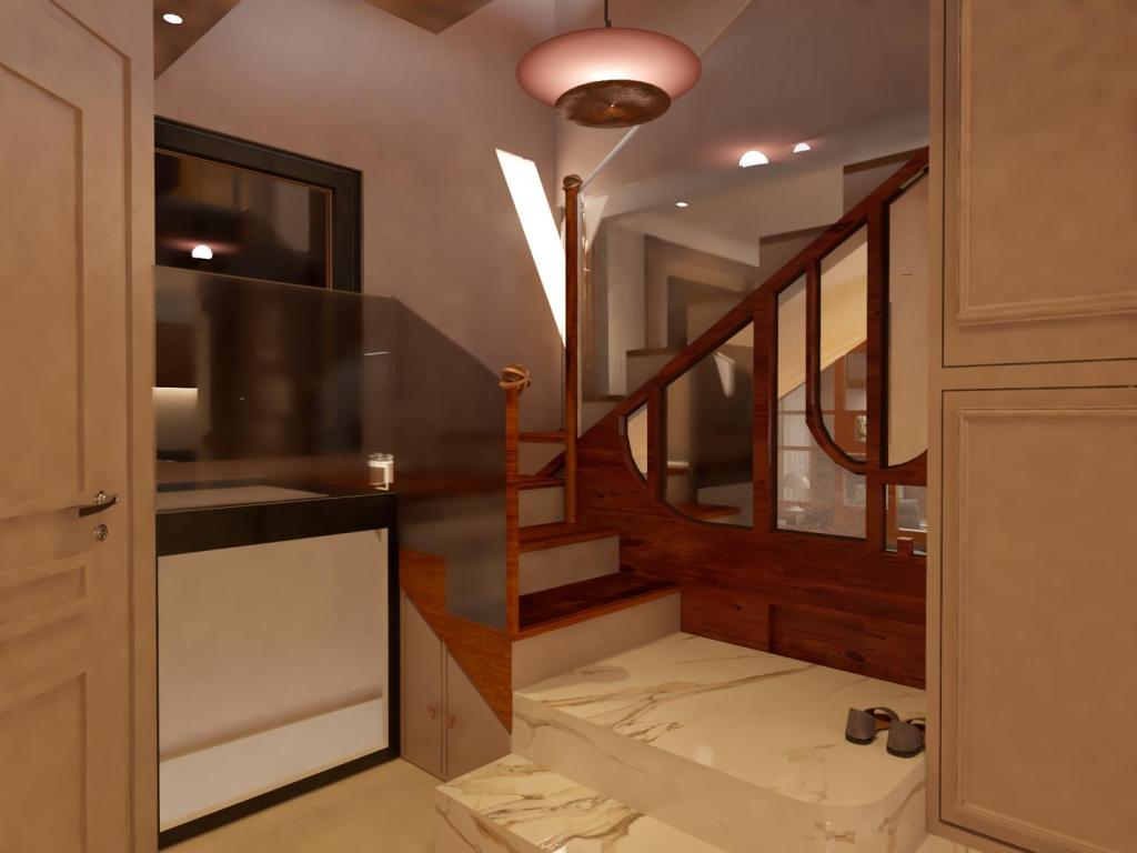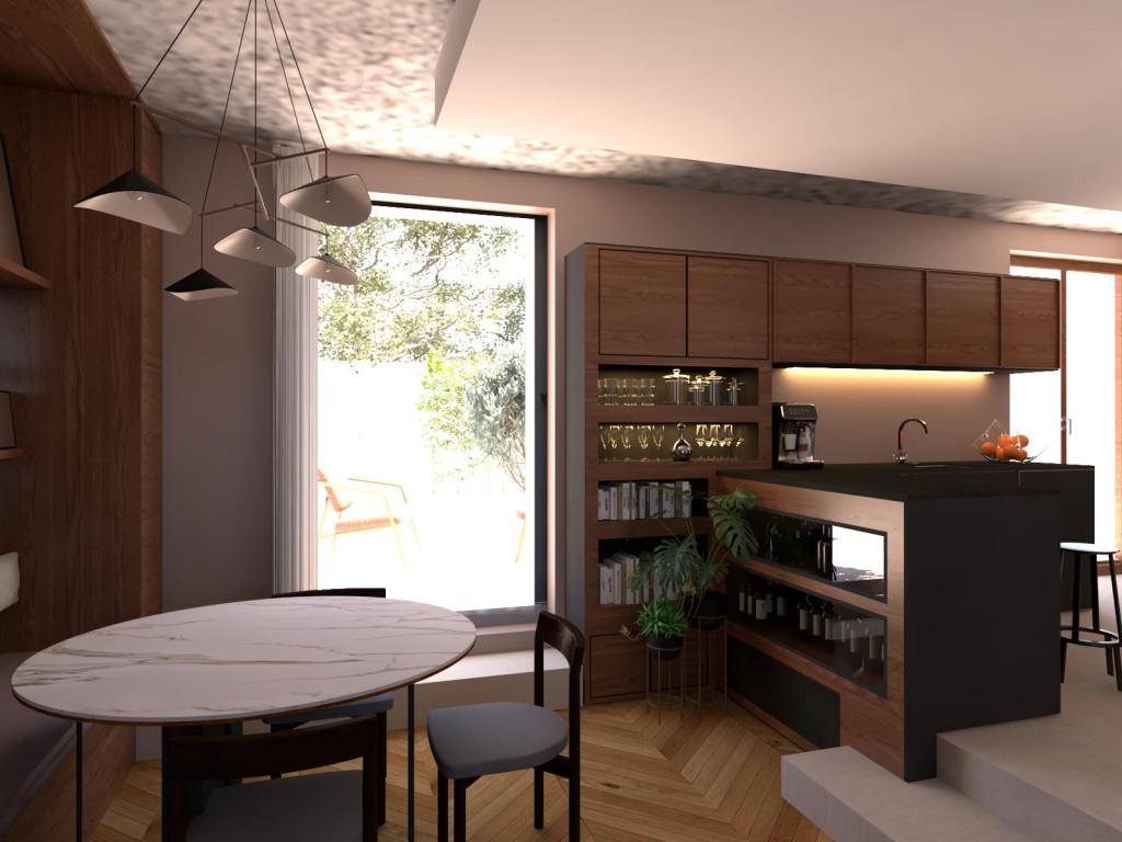 Rénovation d’une maison sur deux étages autour d’un escalier central et menuiserie sur mesure